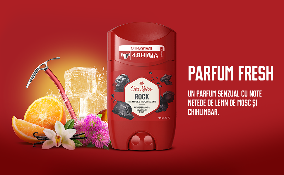 Antiperspirantul si deodorantul Old Spice Rock este atat de puternic incat ar putea bloca un rau. Tehnologie cu parfum care nu se estompeaza, pentru un parfum pe care sa il poti mirosi la nesfarsit. |