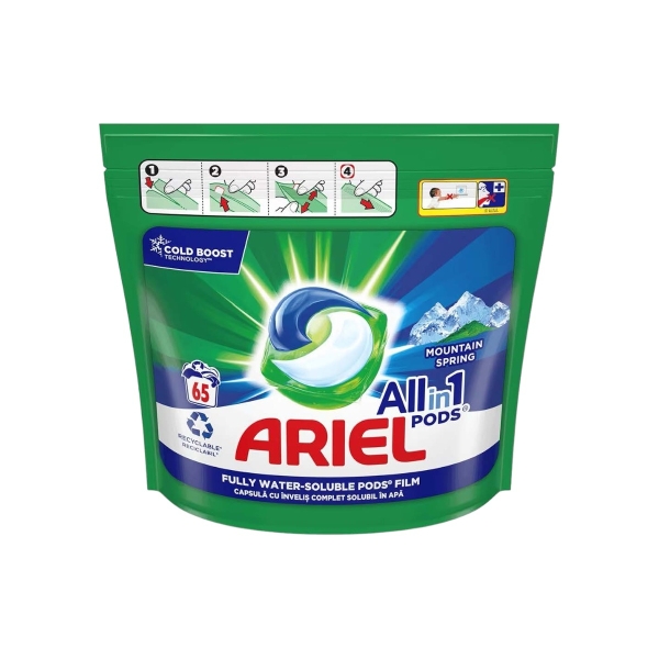 Detergent de rufe capsule Ariel All in One PODS Mountain Spring 65 spalari