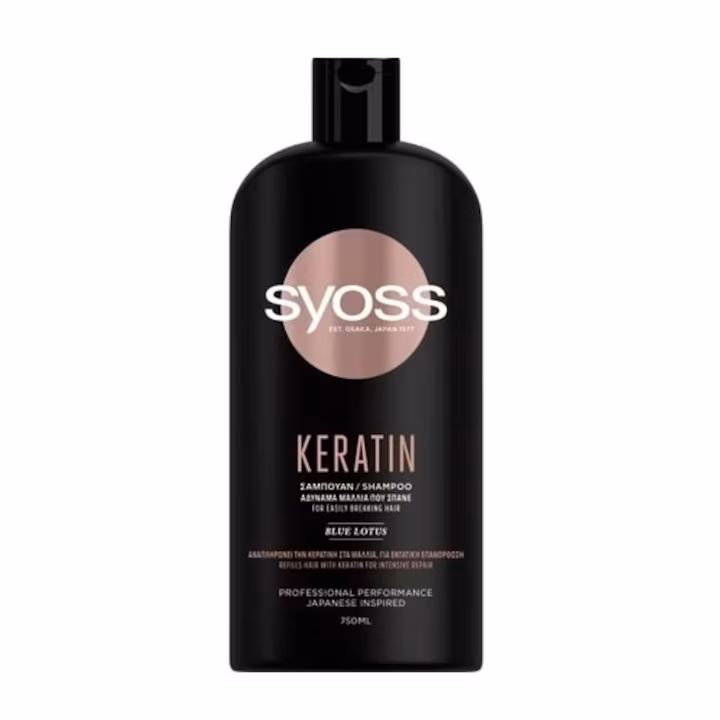 Sampon Syoss Keratin de inspiratie japoneza cu lotus albastru pentru par fragil.