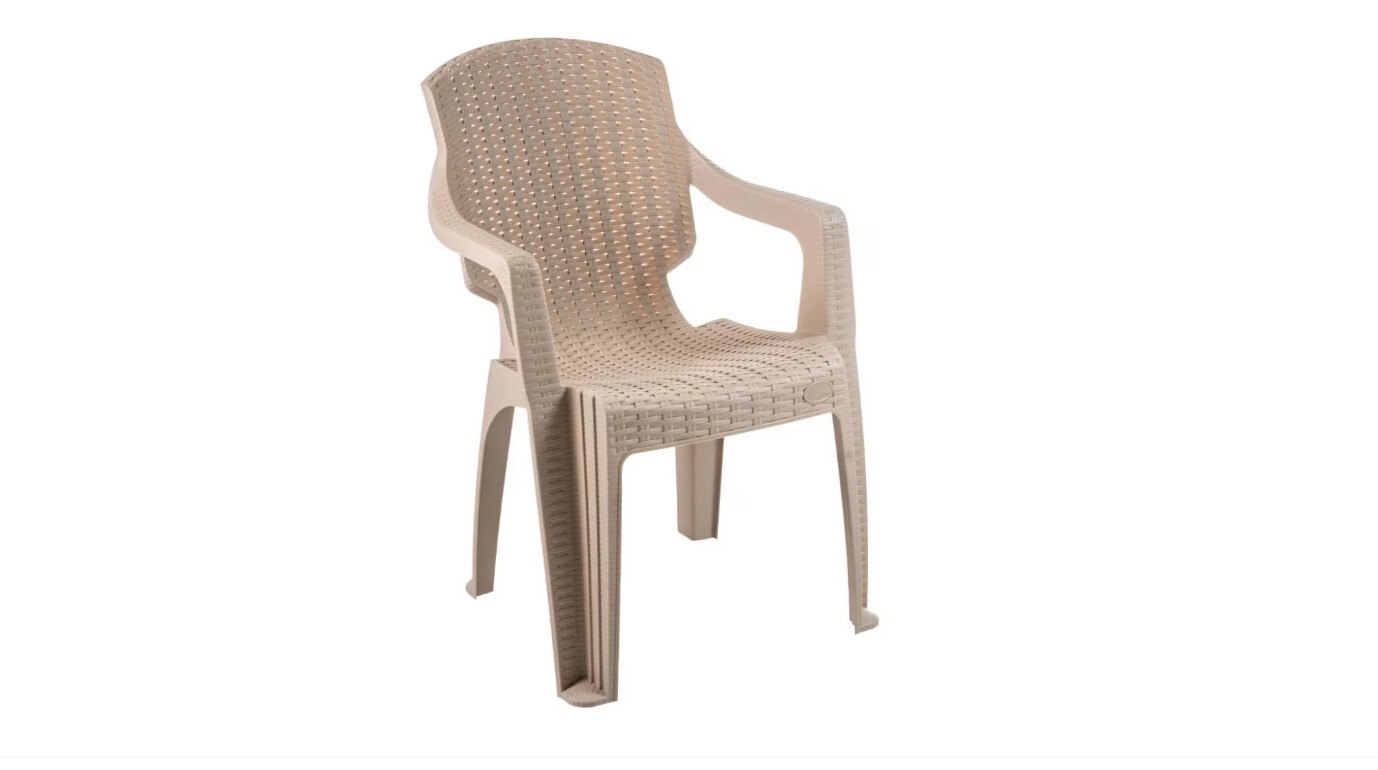 Scaun de gradina si terasa, material polipropilena, model impletitura ratan, culoarea crem